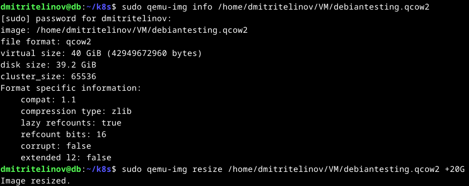 sudo qemu-img resize /home/dmitritelinov/VM/debiantesting.qcow2 +20G